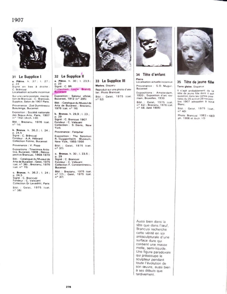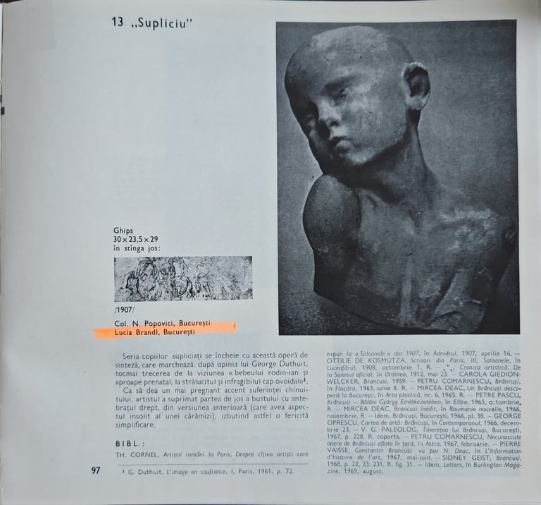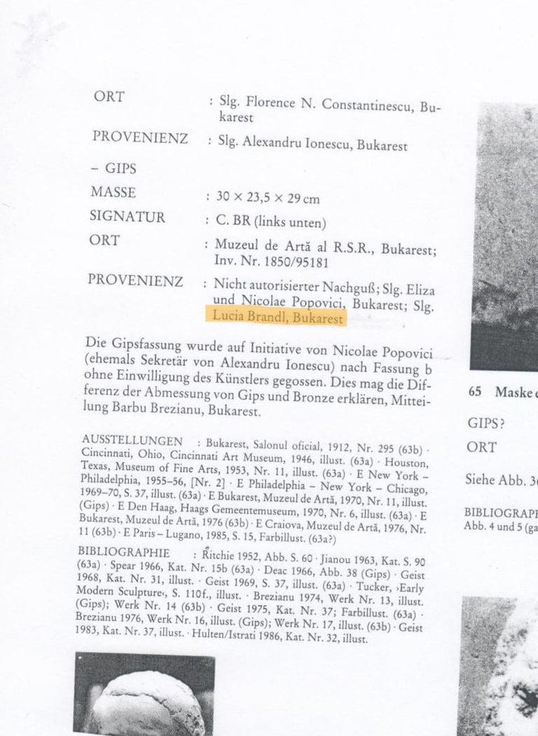 La collection Lucia Brandl : analyse des mentions dans les travaux de Sidney Geist, Barbu Brezianu et Friedrich Teja Bach