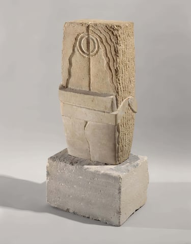 Figure G : Borne frontière, calcaire gris et jaune, 1945 ; dimensions : 184.5 x 41 x 30.5 cm; non signé, non daté (Centre Pompidou, Atelier Brancusi, Paris)
