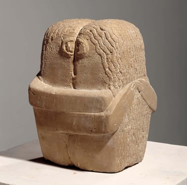 FIGURE A : Le Baiser, pierre de Marne, 1907 ; dimensions : 28,0 x 25,0 x 21,5 cm ; signé « Brancusi » à la base, non daté Musée d’Art Craiova)
